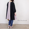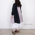 [予約販売] ヨーロッパリネンブラックとアンティークピンクのアシメフラワーワンピース