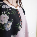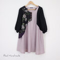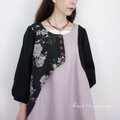 ヨーロッパリネンブラックとアンティークピンクのアシメフラワーワンピース