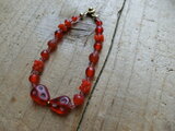 *古のブレス。@ボヘミアの古い赤いビーズいろいろ+ベネチアのローズピンク #S size
