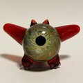 耐熱ガラスで作られたモンスター型のオブジェです。ひとつひとつ虹彩や体の色が違うので、シリアルナンバーが背中に貼ってあります。