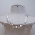 6~8mm淡水パール、ハウライト、ガーデンクォーツの丸玉を糸留めしたパートと