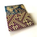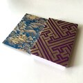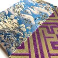 素材は「桐生金襴織物」(化繊)です。比較的丈夫で色褪せし難い為、美しい絵柄を末永くお楽しみ頂けます。織物(繊維)は摩擦や引っかけに繊細な素材です。御朱印帳袋等を使用して御朱印帳を保護して頂き、本作品をより美しい状態で保って頂く事をおすすめ致します。