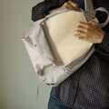 レザーとポリエステルのハイブリッド素材により軽量ながらもファッション性を両立。