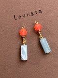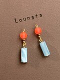 ネオンカラーオレンジガラスビーズとブルーアクリルスティックの小ぶりピアス プチプラ