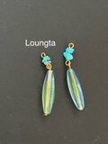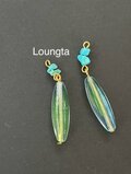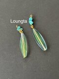 ターコイズピアス さざれ石 グリーンブルーチェコビーズピアス 夏ピアス