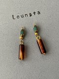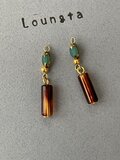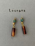 ターコイズカラーガラスビーズと、べっ甲スティックの小ぶりピアス 夏ピアス 軽いピアス