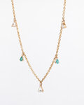 小さなペアシェイプカットのダイヤモンドとパライバトルマリンを配したステーションネックレスです。