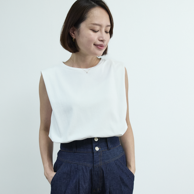 1枚でもインナー、ジレやワンピと合わせで使えるノースリーブTee。
