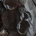 チェリーとリーフ◆プレスガラス中鉢 古道具 昭和レトロ サラダボウル 昭和後期