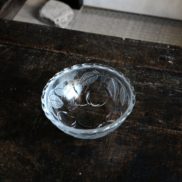 洋な空間にもスッと馴染んでくれる雰囲気のとても素敵なプレスガラスの器になります