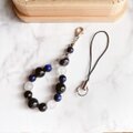 こちらのパワーストーンを組み合わせ、仕事でも普段でもつけやすいデザインのストラップに仕上げました。
