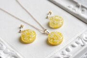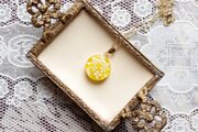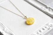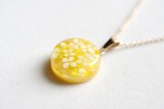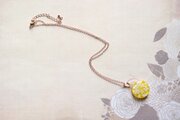 何層にも重ねた黄色の紫陽花の花びらがなんとも可憐で明るいペンダント。