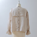 ヨークレイヤーギャザースリーブリネンブラウス/ベージュ