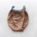 ふんわりダブルガーゼショーツ【モカ×ターコイズ花】ラテックスアレルギー対応