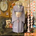 着物 リメイク ミニミディ ワンピース ドレス 洗える 化繊 和洋折衷 ラベンダーに、繊細な幾何と花の縦模様。 KW-962