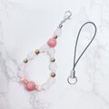 こちらの天然石を組み合わせ、大人可愛いデザインのストラップに仕上げました。