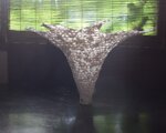成型後、和紙の反故紙を水に溶かしたものを何度も流しかけて、紙の膜を固着させてます。