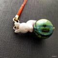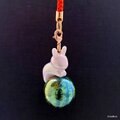 スイカで玉乗り?!うさちゃんの根付け・帯飾り