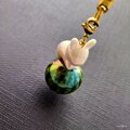 モチーフ側にカニカンを付けています。根付け紐・ストラップ紐・チェーンなどお好みで様々にお使いいただけます。