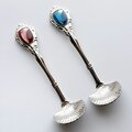 アンティークシュガースプーン【Marine Blue】七宝焼のカトラリー 純銀胎有線七宝