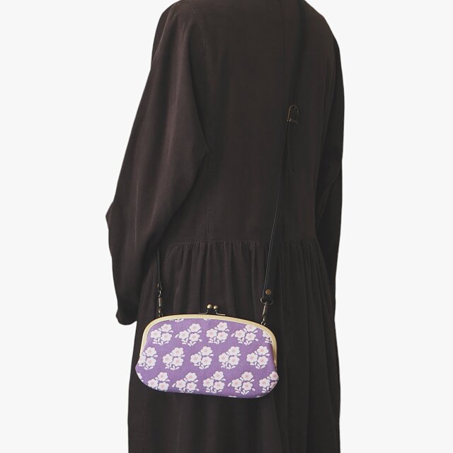 ■ヴィンテージファブリックの親子がま口お財布ショルダー / パープルの花■ mimi (vf-pu)