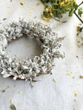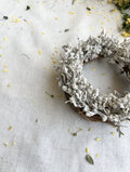 マットな質感のシロヨモギとシロタエギクを挿したシンプルなリース
