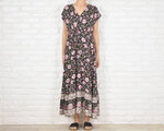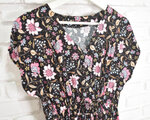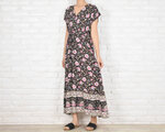 【大きいサイズ】新作!バティック風花柄Vネックフリルワンピース ブラック
