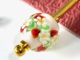苺の花のとんぼ玉でかんざしを作りました。