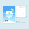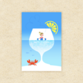 イラストモチーフ:海 女の子 蟹 グラス フルーツ