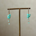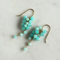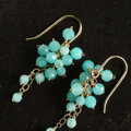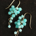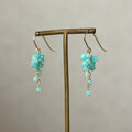 爽やかな青のアマゾナイトシリカをチェーンにとめつけたピアスです。ピアスフック、チェーン、ワイヤーは14KGFを使用しています。