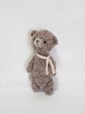 モヘア素材の細い毛糸を使用し、愛らしい表情をした小さなベアを編みました。
