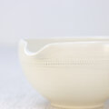 抹茶以外にも煎茶を少し冷ましたり、濃さを均一に淹れるのに一度ここに入れるのにも便利。例えば、急須で2人分お茶を淹れる時にはどうしても1杯目と2杯目の濃さが均一になりませんが、この急須を使えばお客様にお出しするのにも濃さがちょうど良くいれやすいです。濃いめに抹茶を点てて、氷とミルクの入ったグラスに注げば抹茶ラテも楽しめます♪