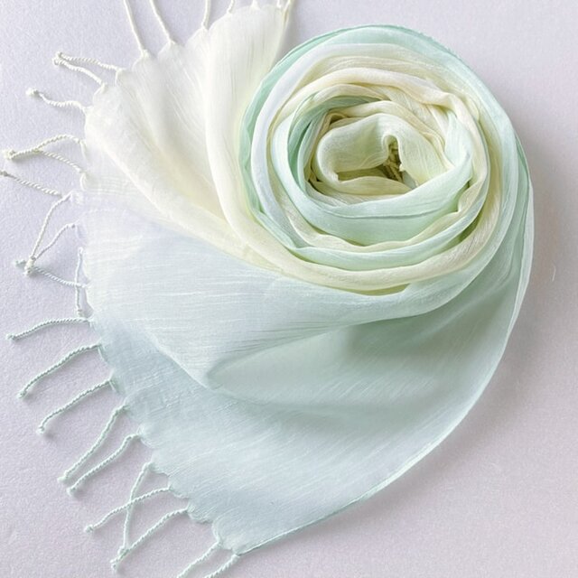 かろやかコットンシルク*白緑色×淡檸檬色*手染めのストール