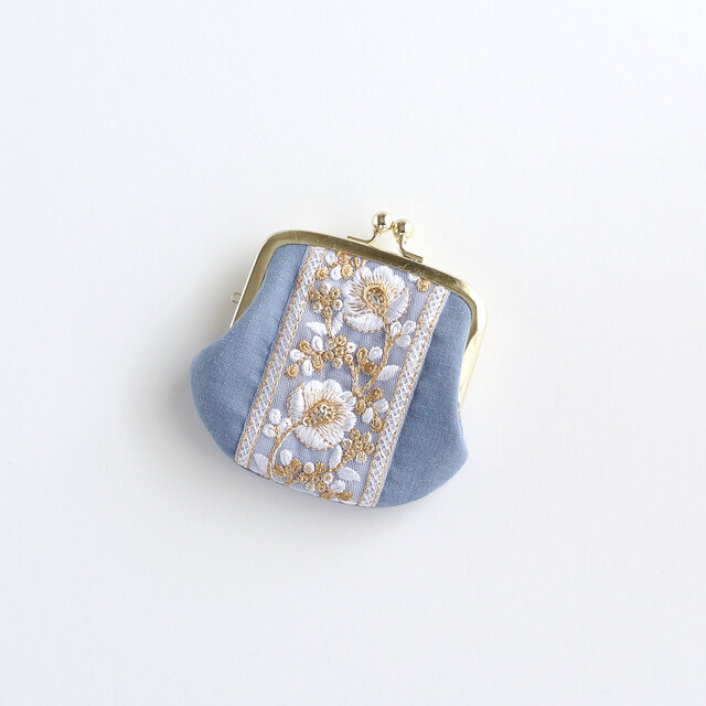 インド刺繍リボンをあしらった手のひらサイズのがま口ポーチ