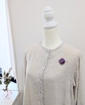 モノトーンやネイビー、アースカラーはもちろん、ブローチと同じ紫のワンピースに合わせても馴染みます。