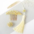 着物小物 3点セット 「 パステルイエロー 」 ヘアコーム 帯留め 帯飾り つまみ細工 パール 和装 紫色 浴衣 春