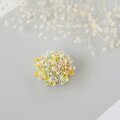 つまみ細工には花柄のデザインペーパー使っており、花の彩りがランダムに散りばめられています。さらに、花の中心の小さな樹脂パールがキラッと優しく光り、明るく可憐な雰囲気がとっても可愛らしいデザインです。