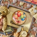 着物リメイク ガラス帯留め 和洋折衷 和ロリータ ハンドメイド アクセサリー 空へと飛ばす、ハッピーブーケ。 GK-120