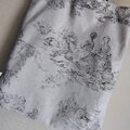 ナチュラルな生成りにトワルドジュイ風のプリントがシックでエレガントな雰囲気です。