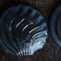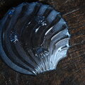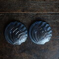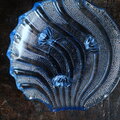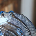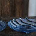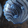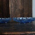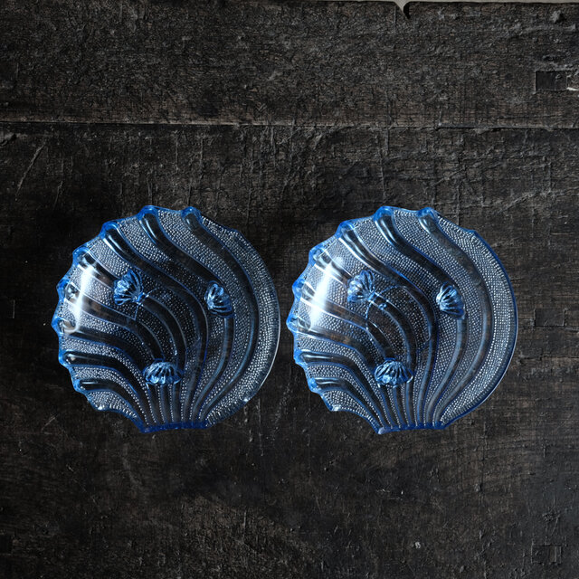 貝殻の形◆薄いブルーで素敵。昭和中~後期 プレスガラス脚付き小皿2客 古道具 昭和レトロ 【傷有り】