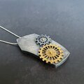 素材:銀925・真鍮、チェーン長さ:銀925製64cm、トップ大きさ:33mm×65mm、重量:34g。