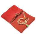 小物入れは革紐や麻紐でくるくると巻いたり、留め爪をループに引っ掛けたりと、
