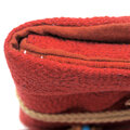 仕切りポケットにはパイピングに苧麻の白糸で刺し子した朱色の紬を、