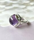 この指輪は、深いパープルの天然アメジストを使用し、手摺り加工による独自のテクスチャーが特徴です。