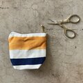大切にしまっておいた小さなハギレを組み合わせて作ったちょこっとサイズのポーチ。