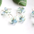 透明感のあるアクアブルーとアクアグリーンが混ざったチェコガラスを、金具に巻き付けて小さな紫陽花をイメージして仕上げました。