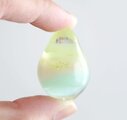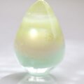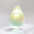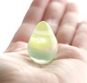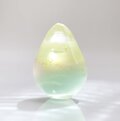 春を感じさせるそれらのガラスを重ね合わせ、無色透明のガラスで包み込んで仕上げた、あたたかで瑞々しい雰囲気を持つ雫型の小さなガラスオブジェです。