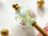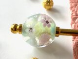 かんざし パステルカラーの花のとんぼ玉 ピンク 水色 春夏 一本挿し 一本簪 洋風 涼しげ トンボ玉 蜻蛉玉
