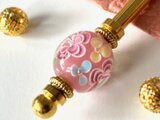 ピンクとパステルカラーの花のとんぼ玉でかんざしを作りました。