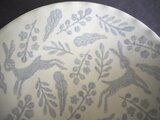 内側にはグレーの色化粧土でうさぎが野であそぶ様子を描きました。
